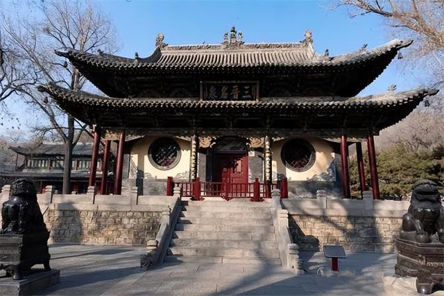 北部從文昌宮起,經(jīng)過(guò)東岳祠、關(guān)帝廟、三清洞、唐叔虞祠、朝陽(yáng)洞、老君洞、云陶洞、財(cái)神洞、待鳳軒、三臺(tái)閣、讀書(shū)臺(tái)、呂祖閣。這個(gè)組團(tuán)的建筑隨著背后所依的山勢(shì)層層疊疊,參差錯(cuò)落,由自然地形圍合了一處幽靜獨(dú)立的空間,使建筑空間與自然景觀融為一體,殿堂樓閣在山林植物的掩映中若隱若現(xiàn)、錯(cuò)綜排列,以崇樓高閣為最盛。北部建筑整體給人整齊統(tǒng)一,規(guī)則有序的感覺(jué),隨山勢(shì)而形成了統(tǒng)一而又變化的一系列空間,緊湊有致,井然有序。
