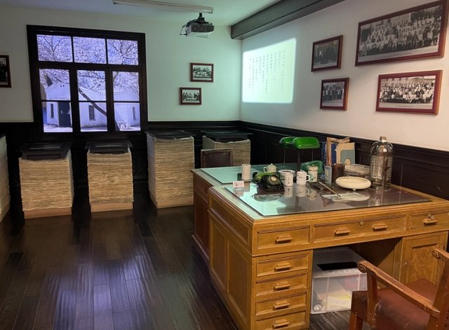 如今,在長影舊址博物館二樓,特別設置了“小白樓”展區(qū),局部還原了“小白樓”內(nèi)的房間布置以及擺設,一本本泛黃的電影劇本,都在述說著長影的創(chuàng)作之魂。墻面的照片、書柜、報刊架乃至桌上的文具,都體現(xiàn)了當時劇作人員的創(chuàng)作激情。