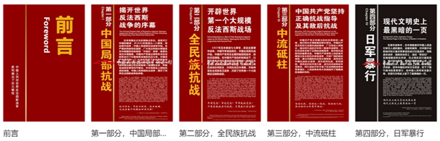 該展覽分為"歷史照片的見證"和"戰(zhàn)爭遺物的折射"兩大部分,展出了130余幅日本侵華的歷史照片和600多件(套)實(shí)物,全部是日本侵略者自身的產(chǎn)物,是首次在抗戰(zhàn)館公開展出。